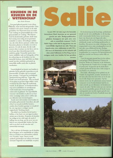 | Bijzonderheden: | MOOI Culinair EXEMPLAAR en MORGEN is van daag geschiedenis * formaat 21x28 pagina,s 66 * kruiden in de keuken en de wetenschap * Salie en de recepten |