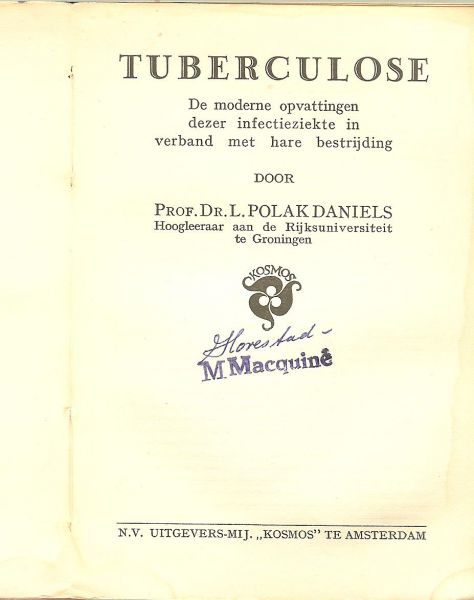 | Titel: | TUBERCULOSE * in tien hoofd stukken ,Tuberkelbacil en zijn gevolgen op de weefsels.Tuberculose van het vee en van de huisdieren en haar gevolgen voor de mensch |