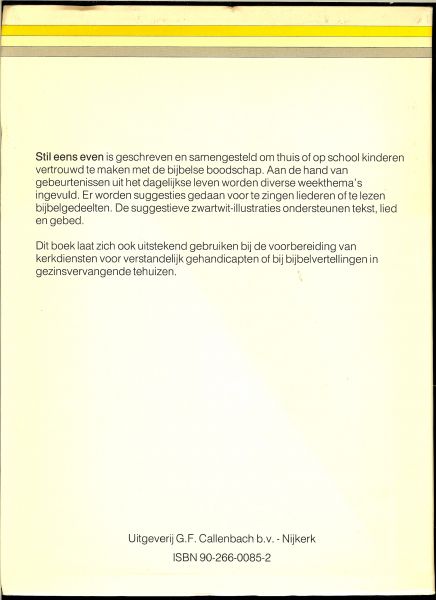 | Uitgever: | Uitgeverij Callenbach Nijkerk * of bijbelvertellingen in gezinsvervangende tehuizen |