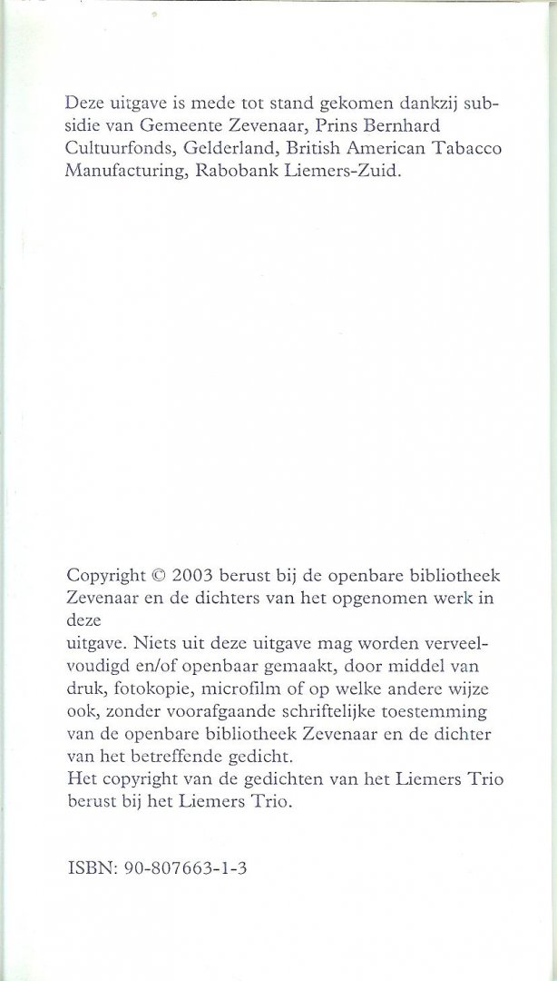 | Uitgever: | Uitgeverij Openbare bibliotheek Zevenaar uit 2003 |