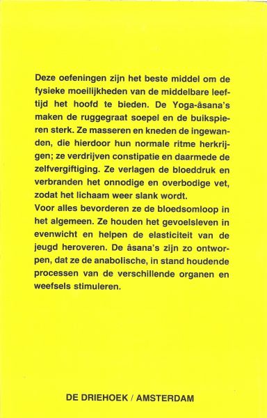 | Uitgever: | Uitgeverij de Driehoek Amsterdam uit 1962..............De algemene physiologische en de therapeutische waarde van de yoga-Asana's |