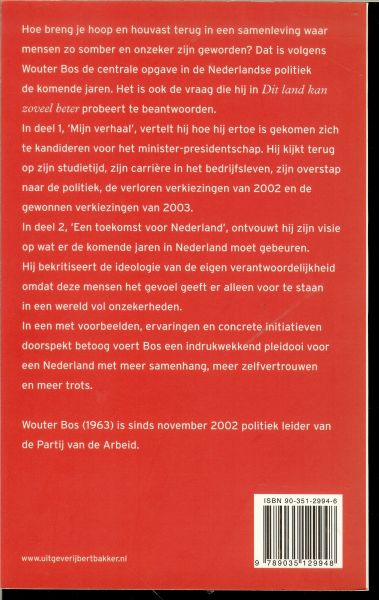![Bos Wouter [1963] is sinds november 2002 politiek leider van de partij van de arbeid. - Dit land kan zoveel beter .. Hoe breng je hoop en houvast terug in een samenleving waar mensen zo somberr en onzeker zijn geworden. Bos Wouter [1963] is sinds november 2002 politiek leider van de partij van de arbeid. - Dit land kan zoveel beter .. Hoe breng je hoop en houvast terug in een samenleving waar mensen zo somberr en onzeker zijn geworden.](https://images.boekwinkeltjes.nl/medium/HzAWefG3eH9B262Rc988.jpg)