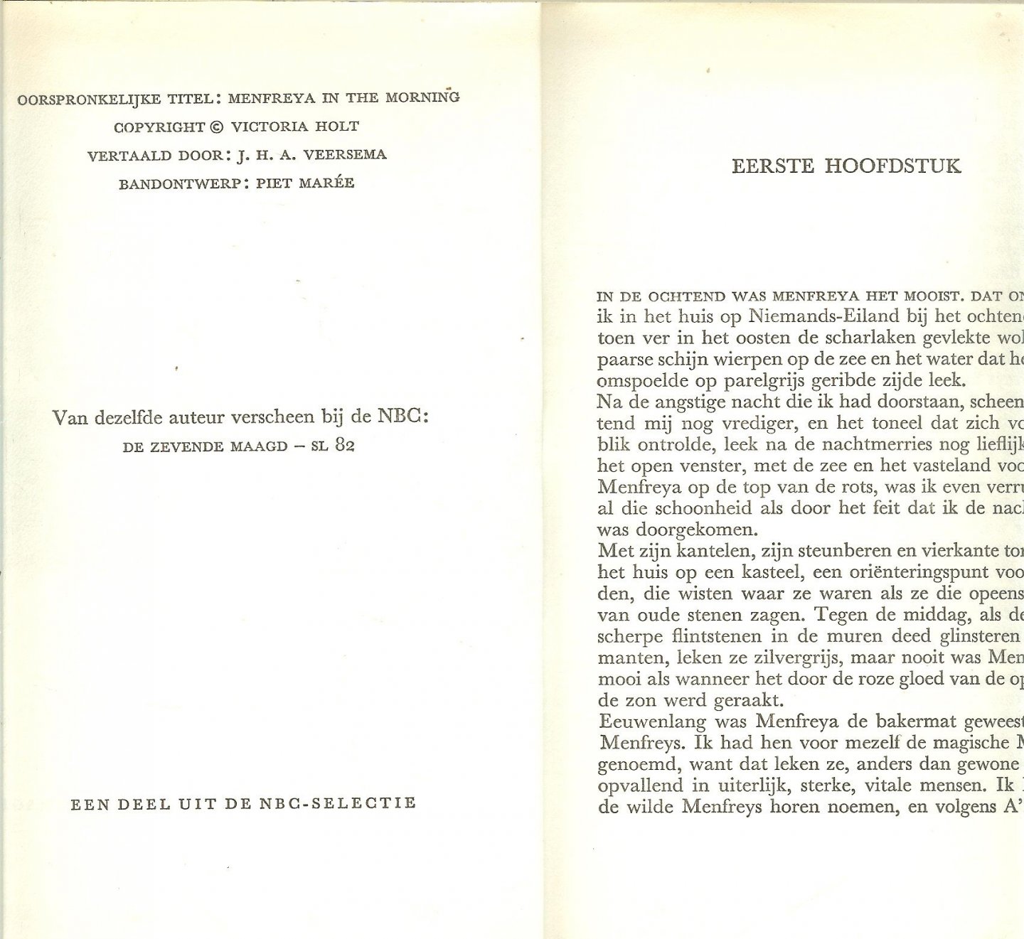| Meer info: | Oorspronkelijke Titel .. Menfreya in the Morning |
