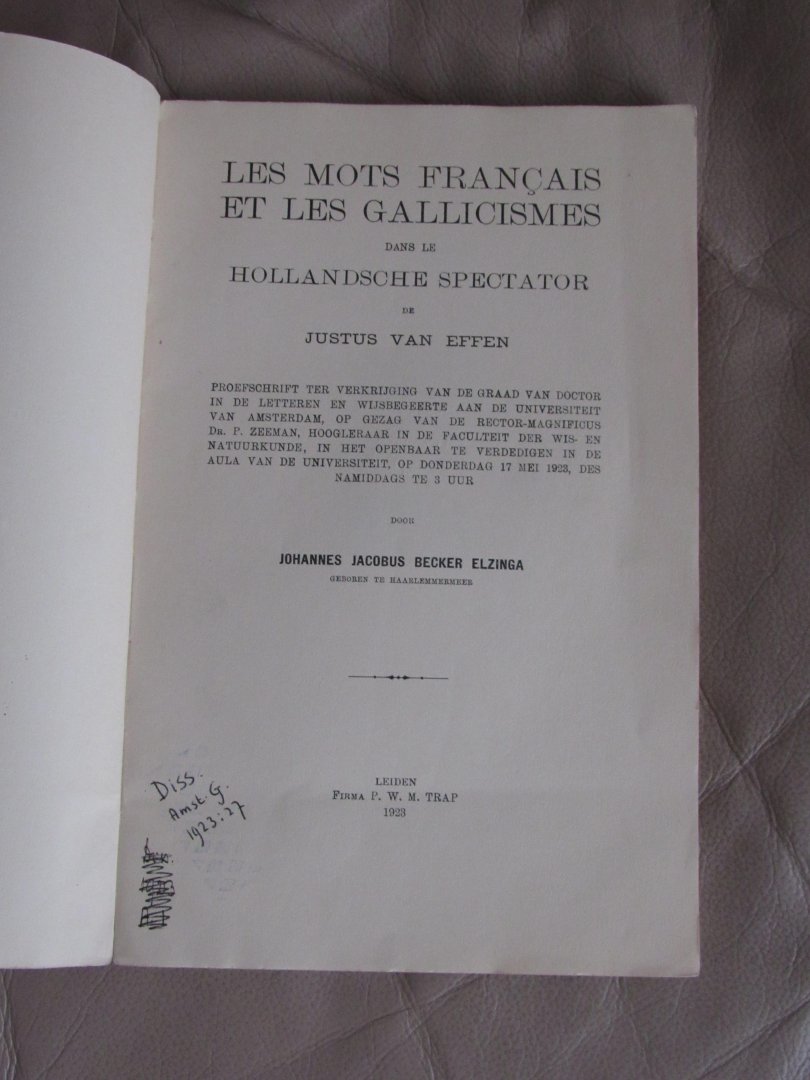 | Titel: | Les mots français et les gallicismes dans le Hollandsche Spectator de Justus van Effen (dissertatie Universiteit van Amsterdam 1923) |
