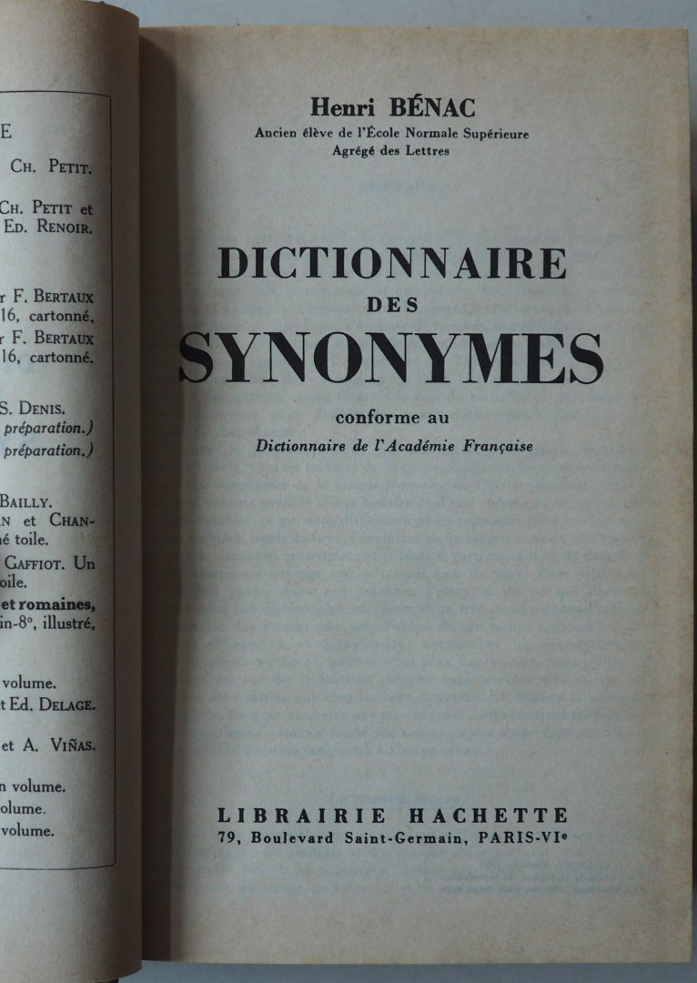 Bénac, Henri - Dictionnaire des Synonymes Conforme au Dictionn