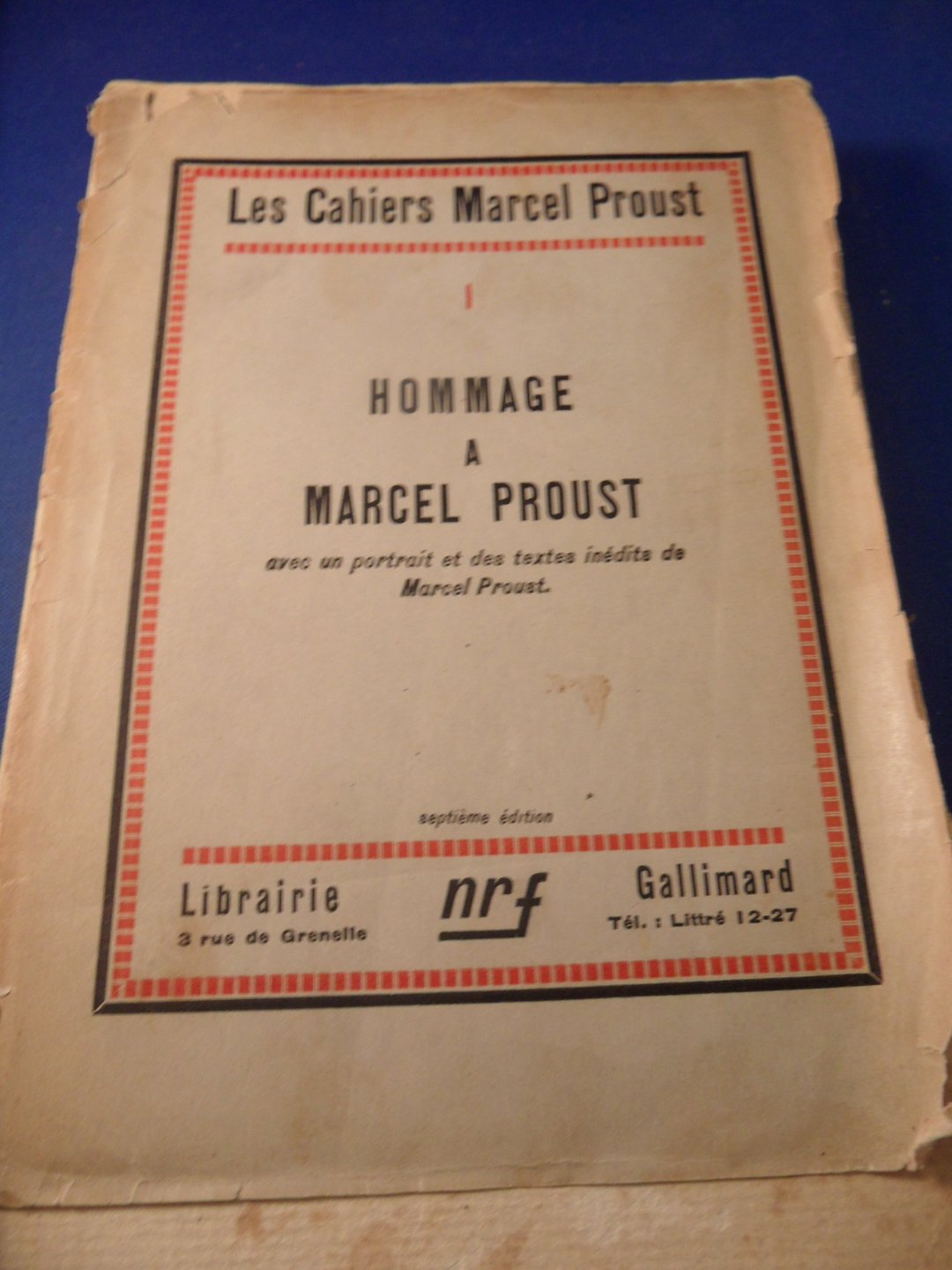 | Titel: | Hommage a Marcel Proust, Les Cahiers Marcel Proust. Avec un portrait et des textes inédits |