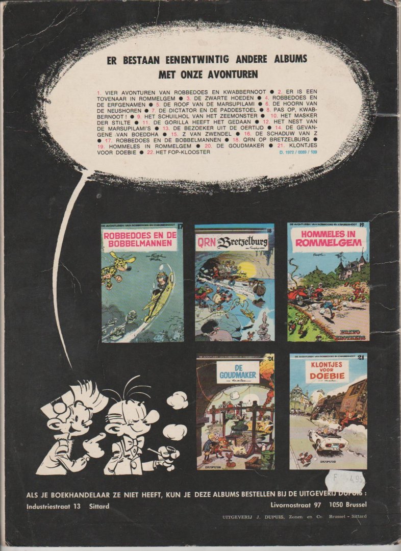 | Titel: | de avonturen van Robbedoes en Kwabbernoot 22 het fop-klooster 1e druk |