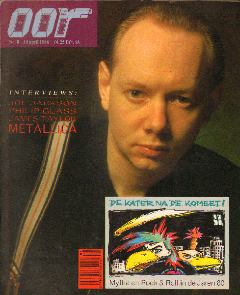 | Titel: | Muziekkrant Oor 1986, nr. 08, met o.a. JOE JACKSON (4 p.+ COVER), JAMES TAYLOR (4 p.), METALLICA (4 p.), PHILIP GLASS (4 p.), NITS (2 p.), goede staat |