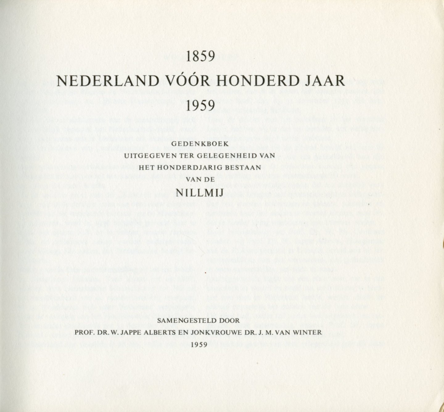 | Titel: | Nederland vóór honderd jaar 1859-1959. Gedenkboek t.g.v. het 100 jarig bestaan van de Nillmij |