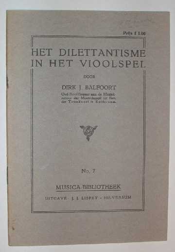 Balfoort, D.J. - Het dilettantisme in het vioolspel.