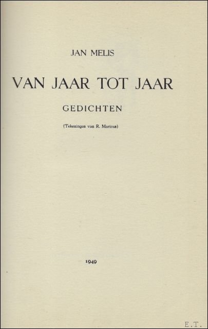 MELIS, JAN. - VAN JAAR TOT JAAR. GEDICHTEN.