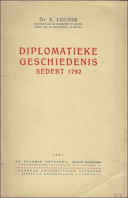 LOUSSE E. - DIPLOMATIEKE GESCHIEDENIS SEDERT 1792.