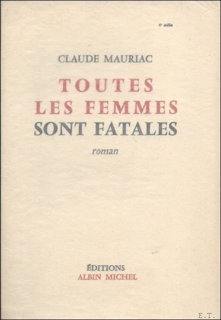 MAURIAC, CLAUDE. - TOUTES LES FEMMES SONT FATALES.