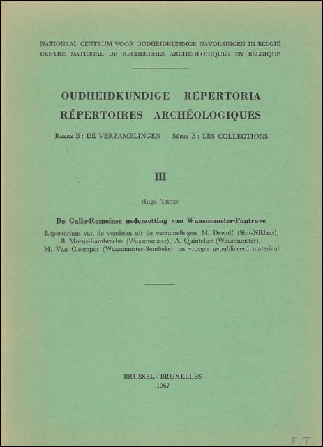 | Titel: | Oudheidkundige Repertoria. Repertoires archeologiques. Reeks B: De verzamelingen. Serie B : Les collections. De Gallo-Romeinse nederzetting van Waasmunster-Pontrave. Repertorium van de vondsten uit de verzamelingen M. Dewulf (Sint-Niklaas), B.... |