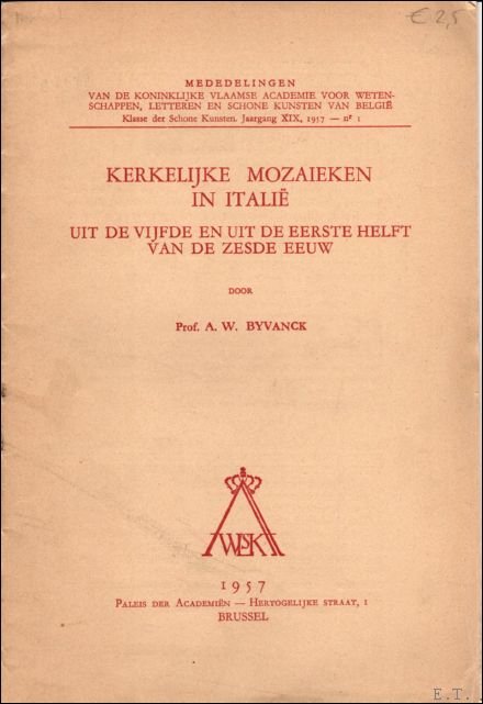 | Meer info: | Mededelingen van de Koninklijke Vlaamse Academie voor Wetenschappen, Letteren en Schone Kunsten van Belgie. Klasse der Schone Kunsten, Jaargang XIX, 1957 - nr 1. |