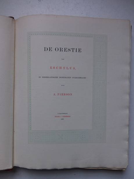 | Bijzonderheden: | 1882; H.J. Stemberg; in Nederlandsche dichtmaten overgebracht door A. Pierson; in o.a. met goudopdruk versierde linnen band; XII en [219] p. |