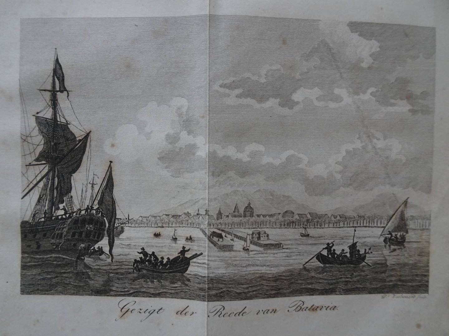 | Bijzonderheden: | (1843); G. Portielje; with 2 lithographs (on titlepage and fullpage frontispiece), 1 folded copperengraving and one large handcoloured folded map ("Kaart van de Nederlandsche bezittingen in Oost-Indië"); original gilt printed cloth; VIII, 159 pp. |