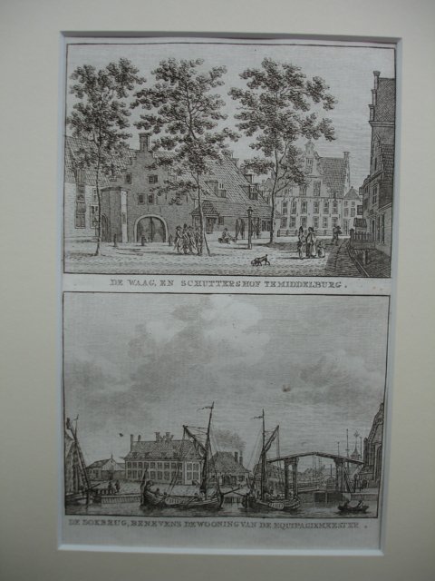 | Titel: | De Waag, en Schuttershof te Middelburg. - De Dokbrug, benevens de wooning van de Equipagiemeester. |