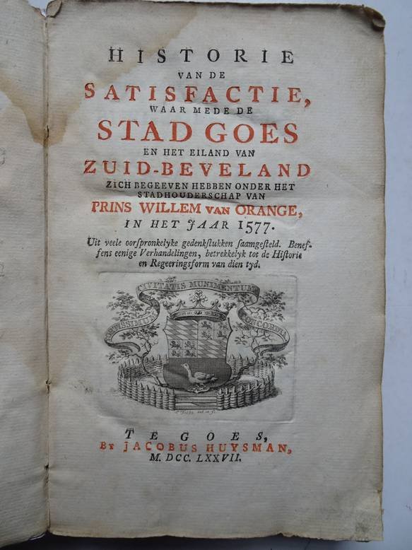 | Titel: | Historie van de Satisfactie, waarmede de stad Goes en het eiland Zuid-Beveland zich begeeven hebben onder het stadhouderschap van Prins Willlem van Orange, in het jaar 1577. |