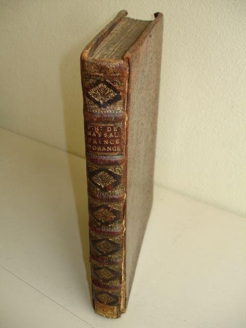 2 leaves torn (and repaired). Joint broken. 3 cm of under side spine lacking. Engravings of 'Siège de la Ville de Bois le Duc', 'Defaitte de la Flotte Espagnollesur le Slaek', 'Mastricht assiégé le 10e Juin, pris le 22e Aout 1632', 'Situation et Prise du Fort de Schenc en 1636, dessiné par l'ingenieur Schort', 'Siège de la Ville de Breda par Frederic Henri le 23e Juilet1637', 'Defaitte de la Flotte d'Espagne aux Dunes d'Angleterre par l'Amiral Tromp le 21e octobre 1639', 'Plan du Siège du Sas de Gand, prisle 7e Septembre 1644 par le Prince F. Henry'and 2 others.