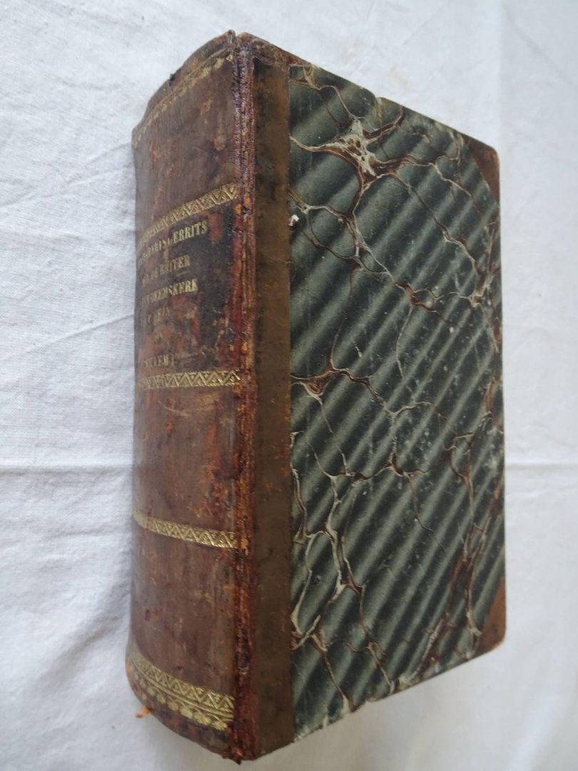 | Bijzonderheden: | 1826, 1824, 1827; Schalekamp & Van de Grampel / Schalekamp, Van de Grampel en Hanssen / Ten Brink & De Vries; with 9 fullpage engravings and 1 portrait on titlepage; half leather with marbled boards; 16x10x6 cm; 268, 249, 247 pp. |