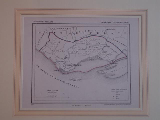 | Uitgever: | Kaart van de gemeente Ellewoutsdijk. Litho 1868. J. Kuyper. Gemeente Atlas van de provincie Zeeland.Uitgave Suringar Leeuwarden. Schaal van 1:37.500. Met handgekleurde gemeente-grens. Afmeting: ca. 18,5 X 16 cm. Geleverd in passe-partout. |