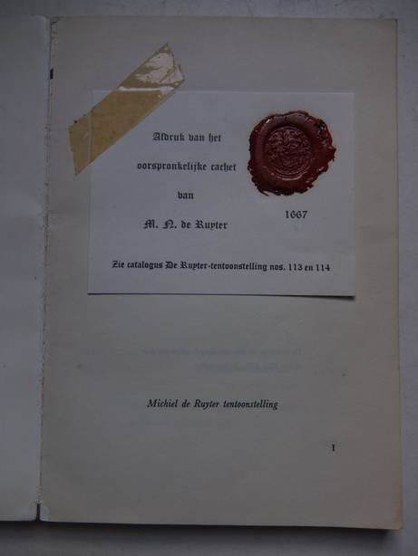 | Meer info: | Voorin voorzien van lakstempel met 'Afdruk van het oorspronkelijke cachet van M.A. de Ruyter'. |