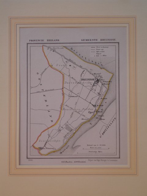 | Uitgever: | Kaart van de gemeente Bruinisse. Litho 1866. J. Kuyper.Gemeente Atlas van de provincie Zeeland. Uitgave Suringar Leeuwarden. Schaal van 1:37.500. Met handgekleurde gemeente-grens. Afmeting: ca.15x20 cm. Geleverd in passe-partout. |