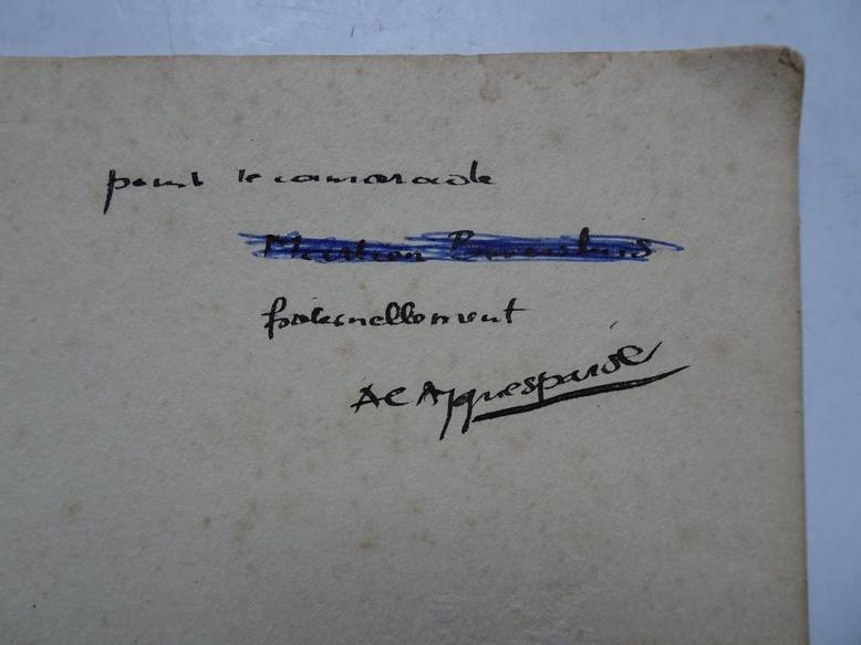 | Bijzonderheden: | 1932; L'Églantine; softcover; with dedication by the author to Martien Beversluis. The name of Beversluis erased with ink (but still visible); 37 pp. |