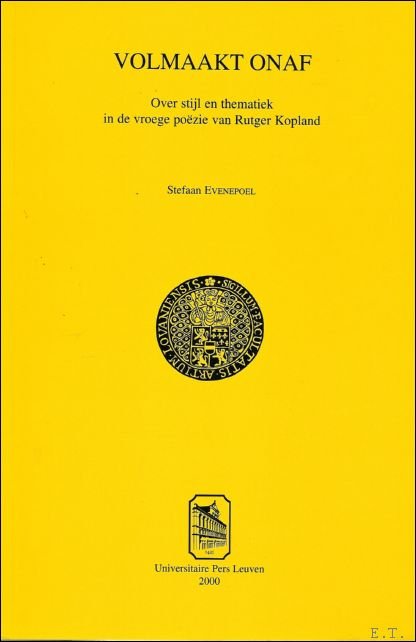 Symbolae Facultatis Litterarum Lovaniensis - Series D : Litteraria 12. Volmaakt onaf. Over stijl en thematiek in de vroege poezie van Rutger Kopland is de eerste monografie die over het werk van Rutger Kopland verschijnt. Stefaan Evenepoel bespreekt daarin de eerste vijf bundels - van Onder het vee tot Een lege plek om te blijven - die Kopland tussen 1966 en 1975 heeft gepubliceerd. De auteur gaat uit van stilistische kenmerken van deze bundels, waarna hij op zoek gaat naar de relatie met Koplands thematiek, met zijn visie op werkelijkheid en poezie. Gaandeweg laat deze studie zien hoe de gedichten erin slagen om bij zovele lezers de indruk op te roepen dat iemand rechtstreeks tot hen spreekt, dat iemand zich aarzelend, tastend, zoekend tot hen richt. De opeenvolgende hoofdstukken staan met andere woorden ook in het teken van de sterke communicatieve kracht van Koplands poezie. Zo wordt in het eerste hoofdstuk de vraag geformuleerd naar de precieze aard van de zogenaamde 'anekdotiek' in de vroege poezie. Om daarop in te gaan, brengt de auteur ook de ontvangst van de opeenvolgende bundels in de literaire kritiek in kaart. De volgende hoofdstukken behandelen de overeenkomsten van Koplands poezie met het woordgebruik en de zinsbouw van gesproken taal en ze besteden extra aandacht aan het typisch poetisch verschijnsel van het enjambement. Nadat enkele frappante verwijzingen naar diverse tekstgenres, zowel naar bijbelse genres als naar populaire liedsoorten, besproken zijn, zorgt het slothoofdstuk voor een synthese en meer thematische interpretatie van al de voorgaande hoofdstukken. Dat levert uiteindelijk aantekeningen op bij de poeticale en ideologische draagwijdte van Koplands poezie. Die doelt op een zo groot mogelijke invulbaarheid, openheid en daardoor soms ook paradoxaliteit. Vandaar de titel die Stefaan Evenepoel aan zijn studie heeft gegeven: Volmaakt onaf. Door middel van het aanwezige - wat in taal en verzen gestalte heeft gekregen - verwijst Kopland naar het afwezige. Koplands intentie wordt uiteindelijk omschreven als 'een poetica van het alternatief'.