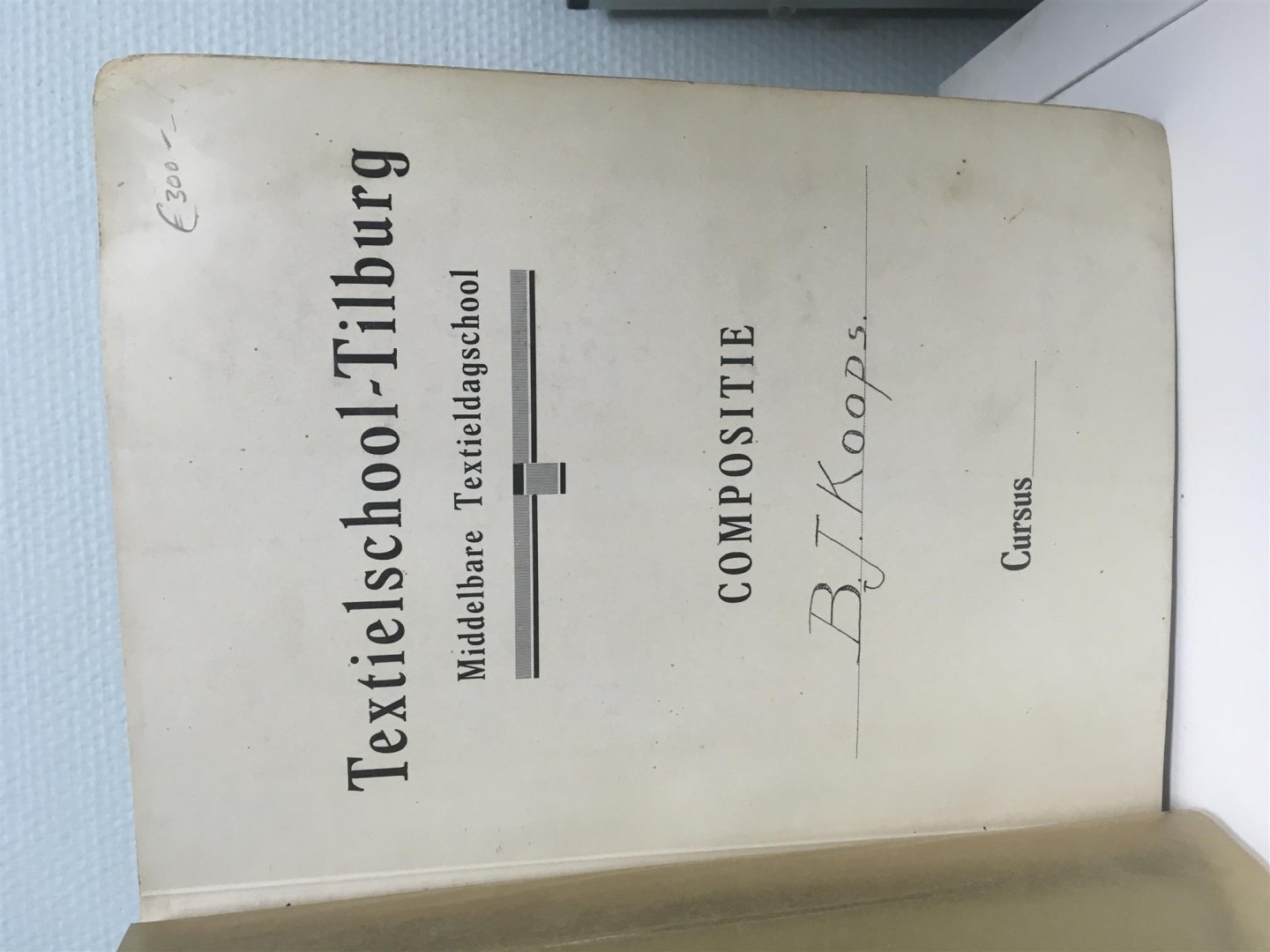 | Bijzonderheden: | c 1940, Zie beschrijving, Big size ledger = 32 C. x 25 Cm.., Label on front: Textielschool Tilburg. Middelbare textieldagschool. Afdeling Spinnen en weven. 194 Pagina's + 7 Pagina's (= decopositie) Manuscript en composing textile tissues ( weaving... |