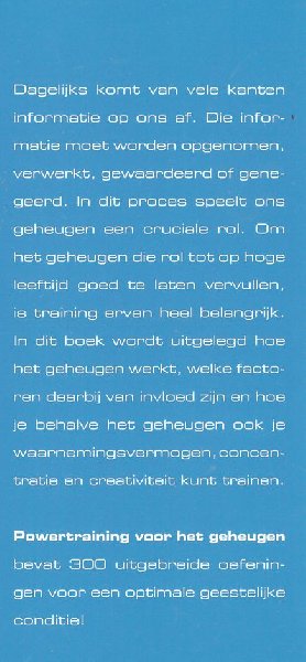 | Titel: | POWERTRAINING VOOR HET GEHEUGEN . 300 oefeningen voor uw geestelijke fitness |
