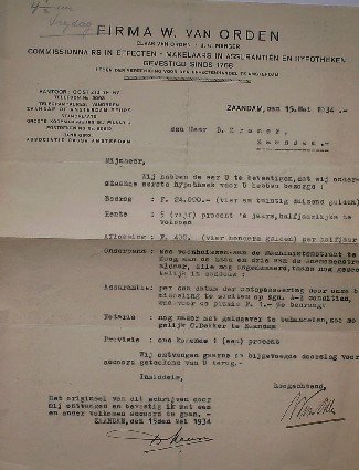 | Titel: | Brief aan D. Kramer, Zaandam, betreffende hypotheek pand Anemonenstraat. |