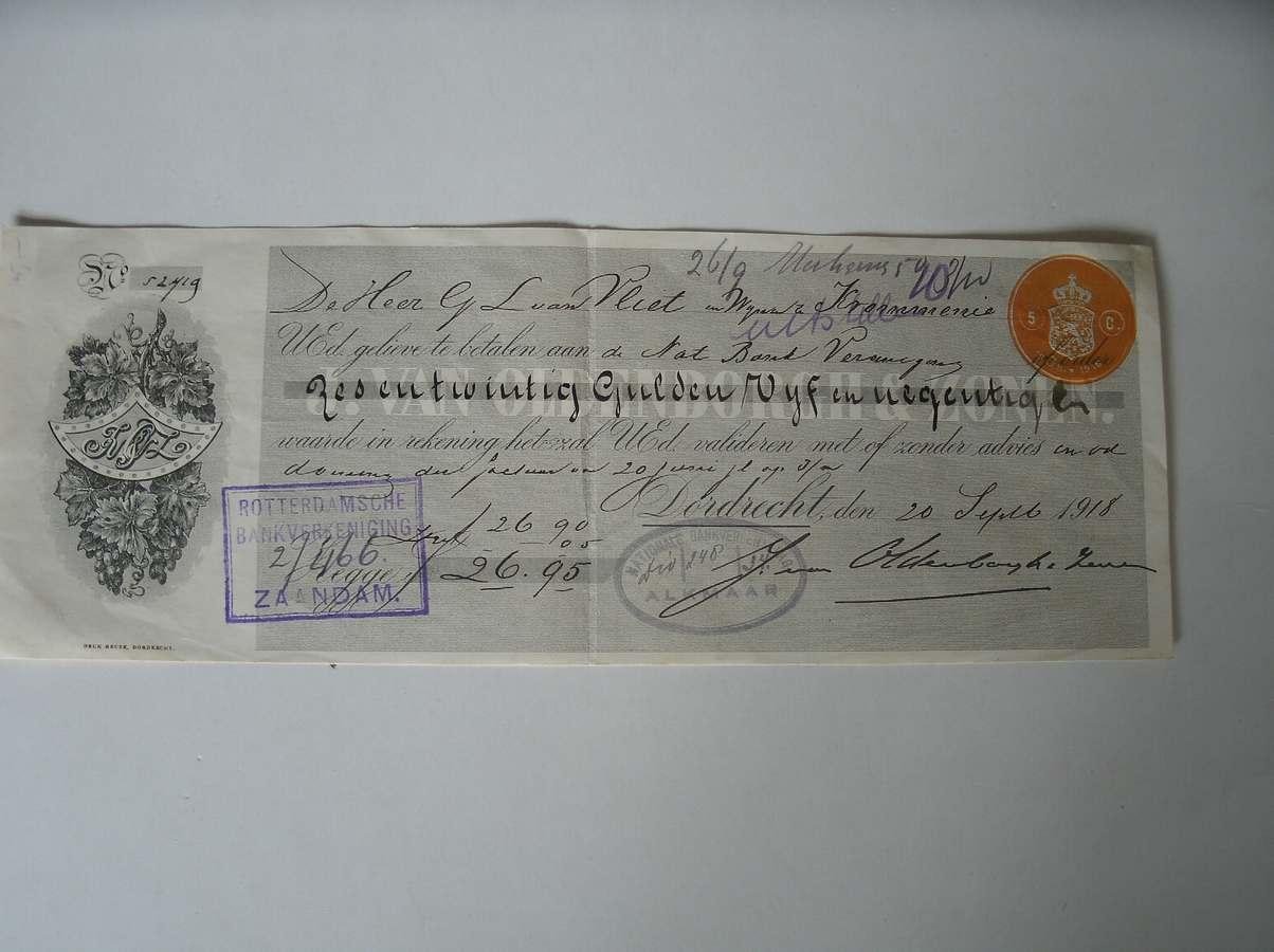 | Titel: | De Heer G.L. van Vliet, Krommenie. Te betalen aan de nationale bankvereniging. |