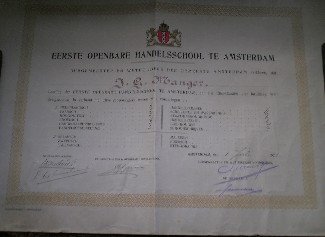 | Titel: | Eerste openbare handelsschool te Amsterdam. Diploma. J.G. Manger. |
