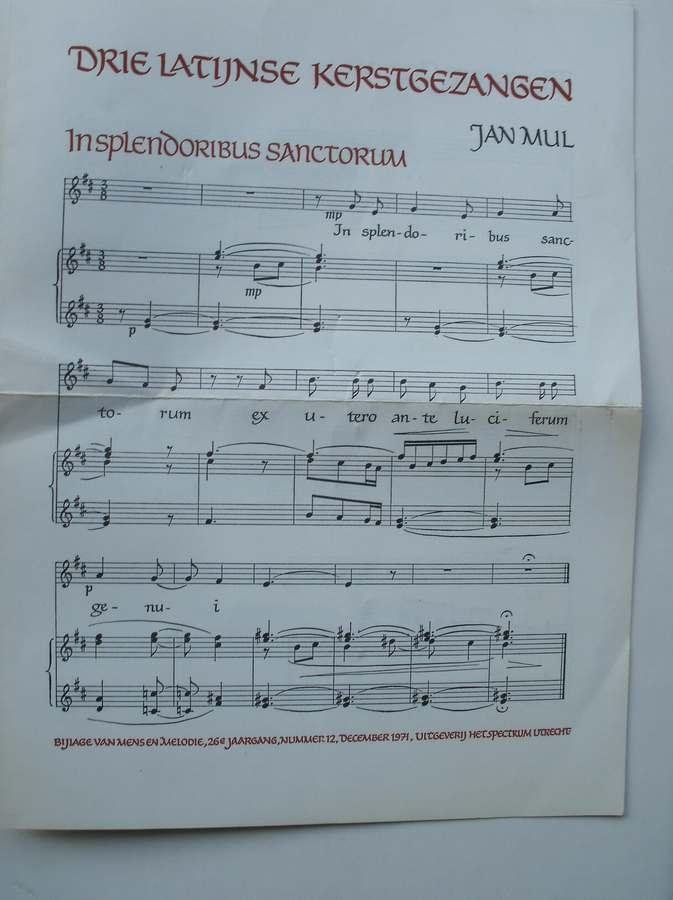 MUL, JAN, - Drie latijnse kerstgezangen.