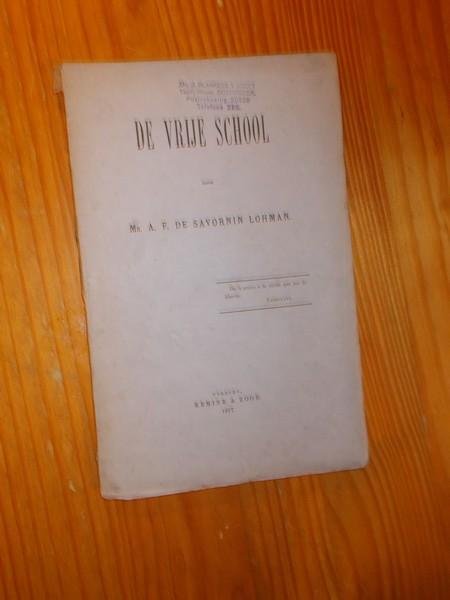 SAVORNIN LOHMAN, A.F. DE, - De vrije school.