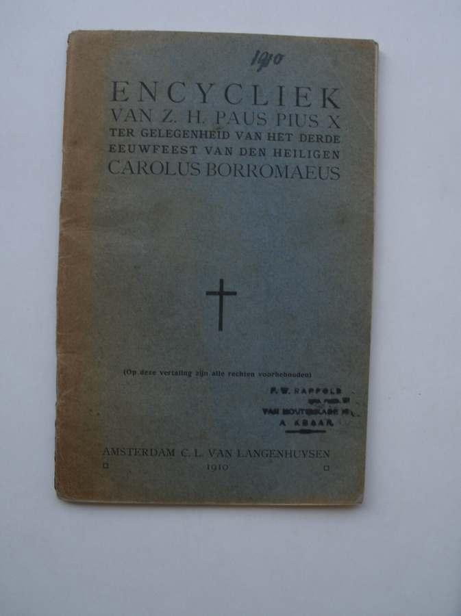 | Titel: | Encycliek van Z.H. Paus Pius X ter gelegenheid van het derde eeuwfeest van den H. Carolus Borromaeus. |