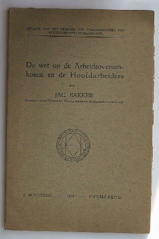 BAKKER, JAC., - De wet op de Arbeidsovereenkomst en de Hoofdarb