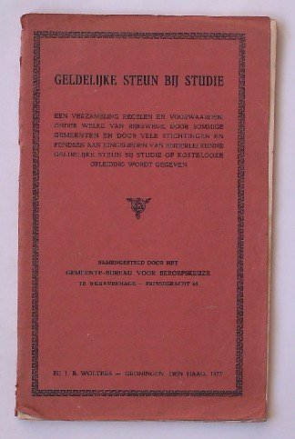 | Titel: | Geldelijke steun bij studie. Een verzameling regelen (..). Samengesteld door het gemeente-bureau voor beroepskeuze te `s-Gravenhage. |