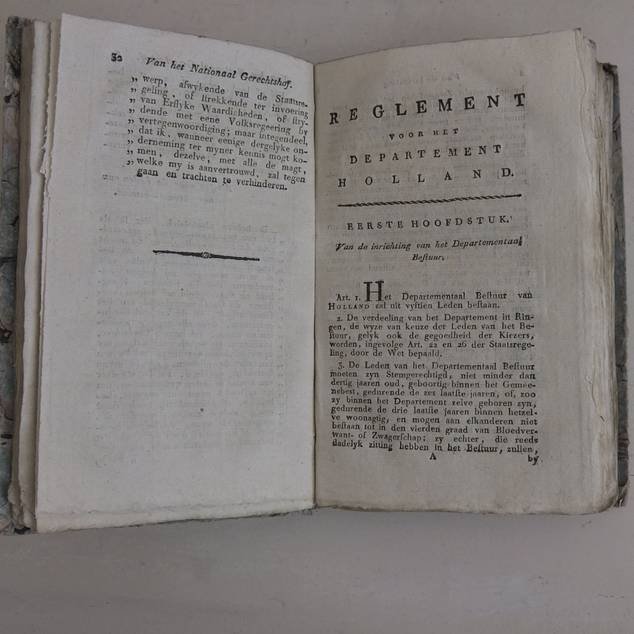 | Meer info: | Inhoud: Staatsregeling en afzonderlijke Reglementen voor Holland, Gelderland, Zeeland, Friesland, Utrecht, Overyssel, Groningen en "Braband". |