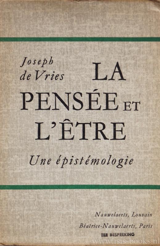 VRIES, J. DE - La pensée et l'être. Une épistémologie. Traduit