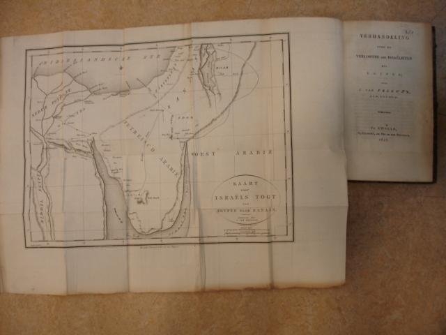 | Bijzonderheden: | 1816; Clement, de Vri en van Stégeren; halfleer met gemarmerde platten; 8vo; rug met goudopdruk; met gegraveerde, uitvouwbare, "Kaart voor Israëls tocht van Egypte naar Kanaän"; VIII, 78 & VI, 106, 20 p. |
