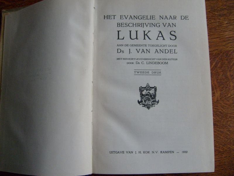 | Meer info: | Het Evangelie naar de beschrijving van Lukas aan de gemeente toegelicht door Ds. J. van Andel met een kort levensbericht van den auteur door Ds. C. Lindeboom |