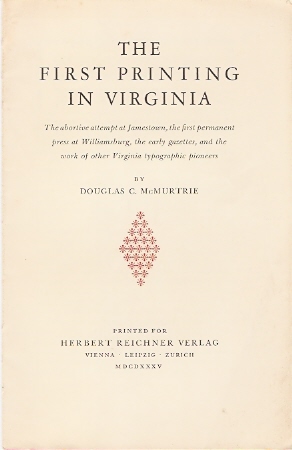 McMurtrie, Douglas C. - The First Printing in Virginia