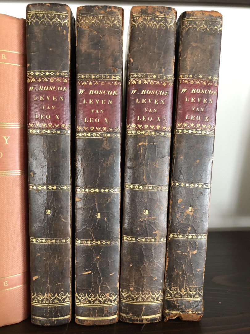 | Bijzonderheden: | 4 delen;344, 388, 422, 458pp; half leer; 1 portret; vertaling H.P.K. Henke; goede staat; lederen rufband deel I aan onderzijde licht beschadigd; oude aantekening in deel I |
