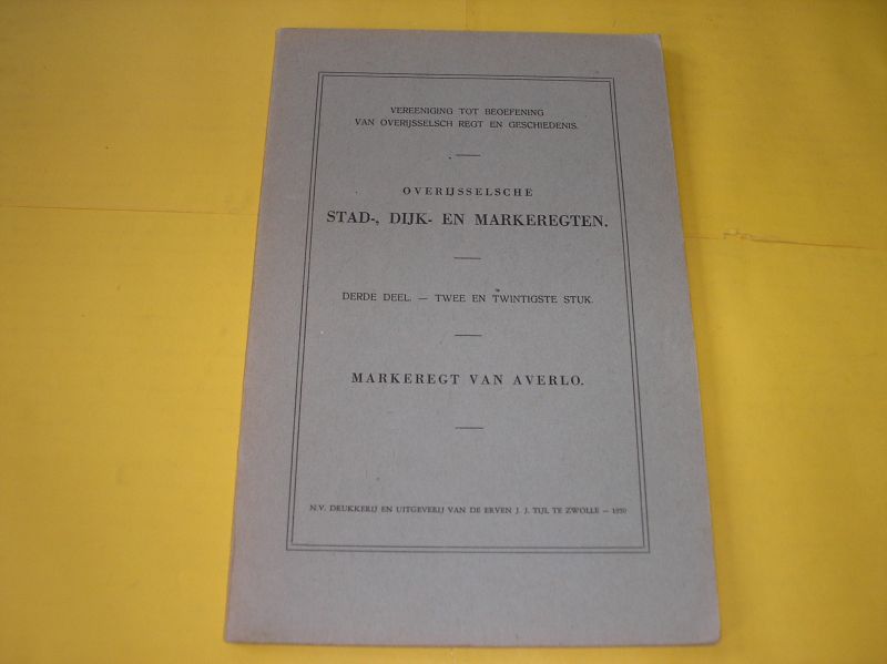 | Titel: | Overijsselsche stad-, dijk en markeregten. Derde deel ? twee en twintigste stuk. Markeregt van Averlo. |