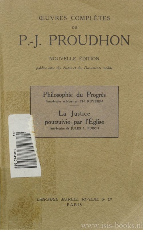 | Titel: | Philosophie du progrès. La justice poursuivie par l'église. Introduction par J.L. Puech. |