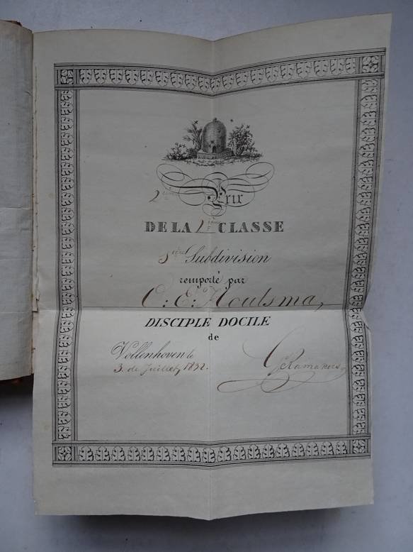 | Bijzonderheden: | 1830; Librairie d'Éducation d'Eymery, Fruger et Cie.; halfleather with marbled boards; ca. 11x17 cm.; spine with gilt printed title shield; 6th edition; revised edition by M. le Chevalier de Propiac; engraved illustrations; prizebinding; prize ti... |
