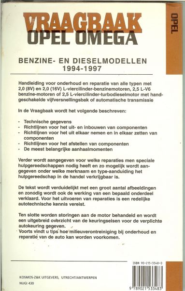 | Titel: | Vraagbaak Opel Omega - Benzine- en dieselmodellen 1994-1997 met alle afstelgegevens |